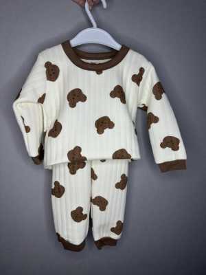 Комплект из 3-х предметов: трикотажная кофта с капюшоном, боди длинный рукав и штаны. Мягкий и уютный комплект.