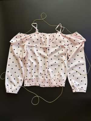 H&M Топ для девочки 152 см, розовый в черный горошек, открытые плечи.