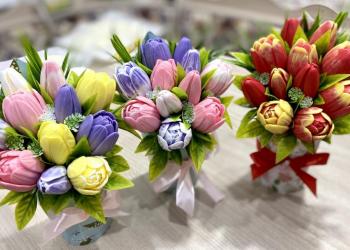 Яркий, весенний, цветочный мыльный БОЛЬШОЙ букетик из тюльпанов – отличный подарок своим родным и близким не только на 8...
