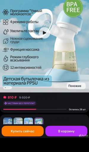 Абсолютно новый молокоотсос. Коробка в пленке, которая не вскрыта. Не понадобился.