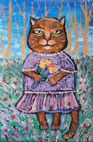 =Кот-Помощник= Акрил, холст на подрамнике 20х15 см