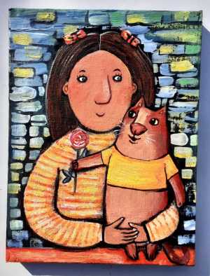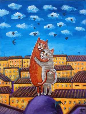 =Спасение кота= Ручная работа, не печать! Уникальность Акрил, холст на картоне 30х20 см В раму не оформлена Отправляю